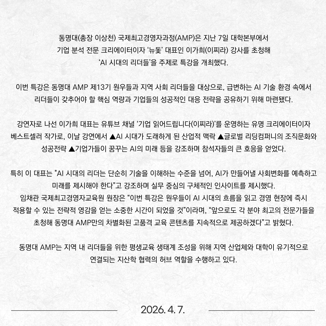 AMP, 기업 분석 크리에이터 '이찌라' 초청 특강 성료